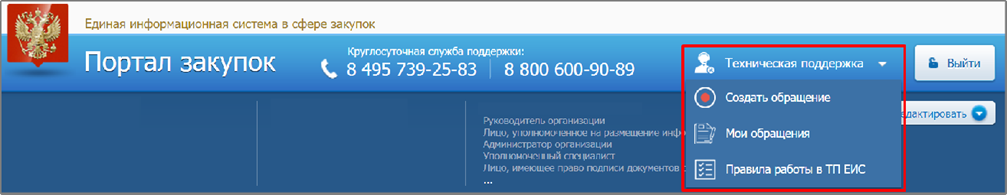 Создание обращения в техническую поддержку через официальный сайт ГИС ЕИС